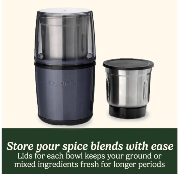 - تأتي مع وعاءين حتى تتمكن من طحن التوابل أو القهوة الحلوة أو المالحة بشكل منفصل دون أي تلوث بالنكهات