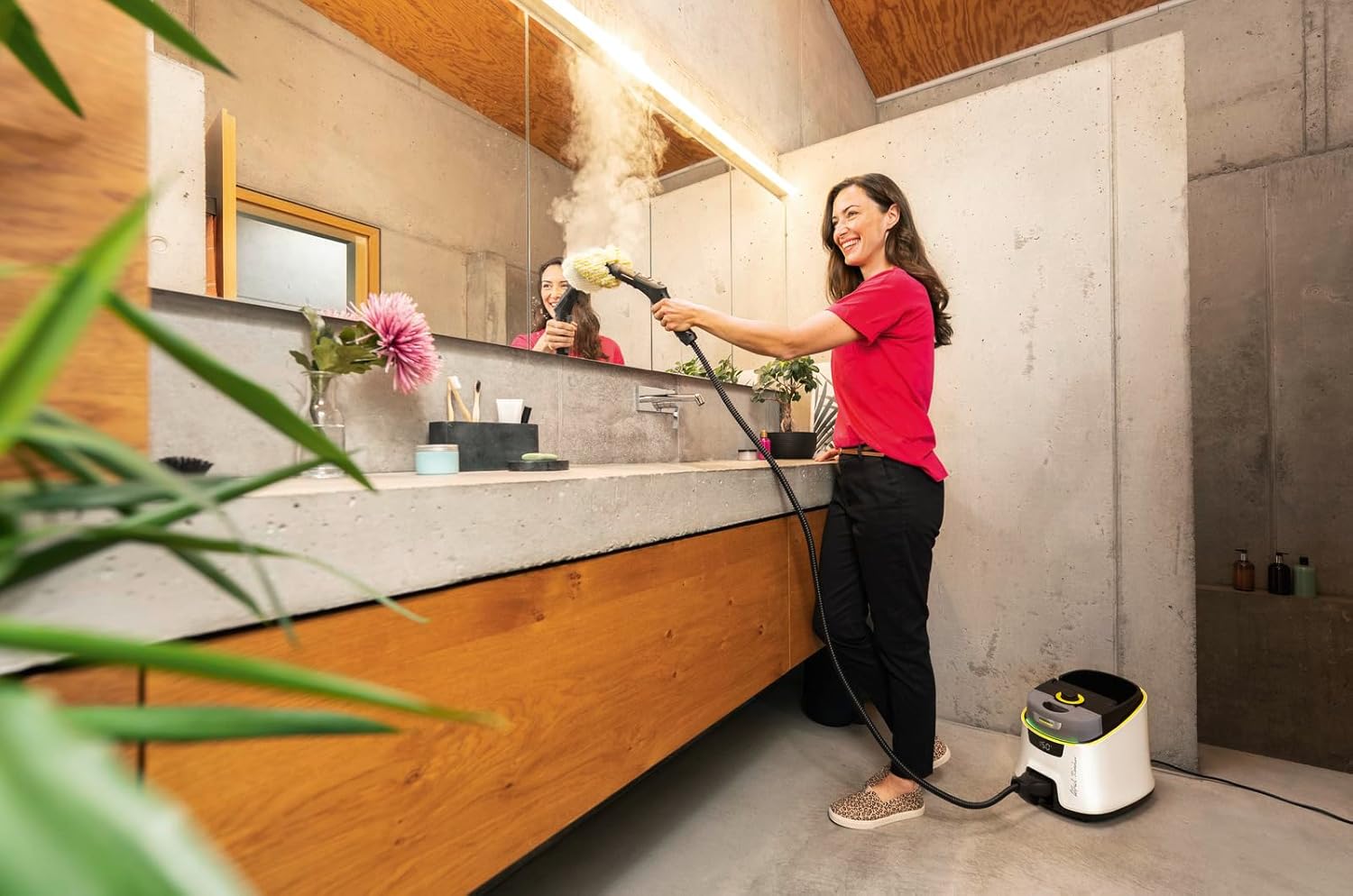 - الاستخدامات: توفر آلات التنظيف بالبخار من Kärcher مساحة معيشة صحية ونظيفة يمكن استخدامها في العديد من المجالات مثل تنظيف البلاط والأسطح الزجاجية والمرايا والنوافذ والمراوح وتنظيف المواقد والأفران والمصارف والحنفيات وكابينة الاستحمام وحتى الشقوق