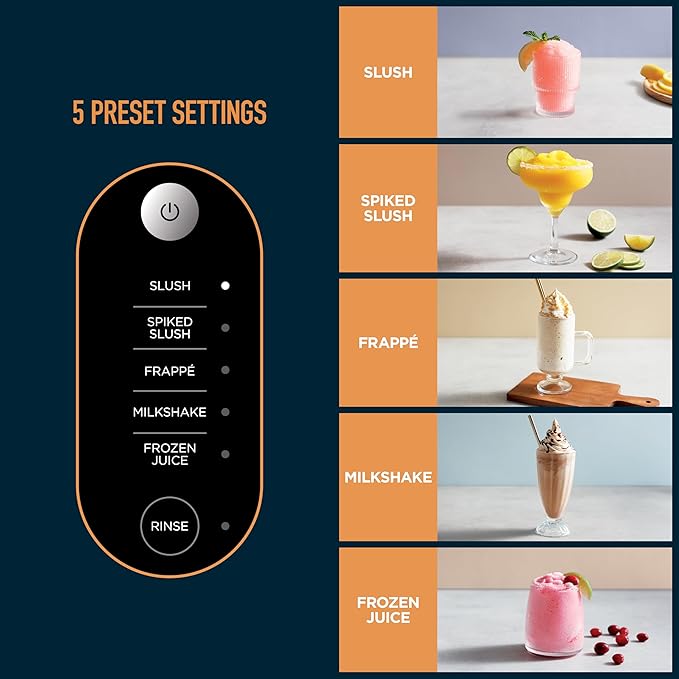 - تجربة مشروبات مجمدة رائعة: مع هذه الآلة متعددة الاستخدامات، حوّل سوائلك المفضلة إلى مشروبات مجمدة ناعمة ولذيذة: نبيذ، قهوة، صودا، عصير، حليب شوكولاتة، وغيرها الكثير. ما عليك سوى صبّ السائل، واختيار البرنامج، وشاهده يتحوّل.