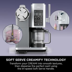 آلة صنع الآيس كريم والآيس كريم نينجا سويرل من كريمي، مزودة بعبوتين، 13 وظيفة، تُحضّر الآيس كريم، والآيس كريم الناعم، والجيلاتو، والسوربيه، والميلك شيك، وغيرها، مع خيار المزج، لون فضي بلاتيني، NC701UK